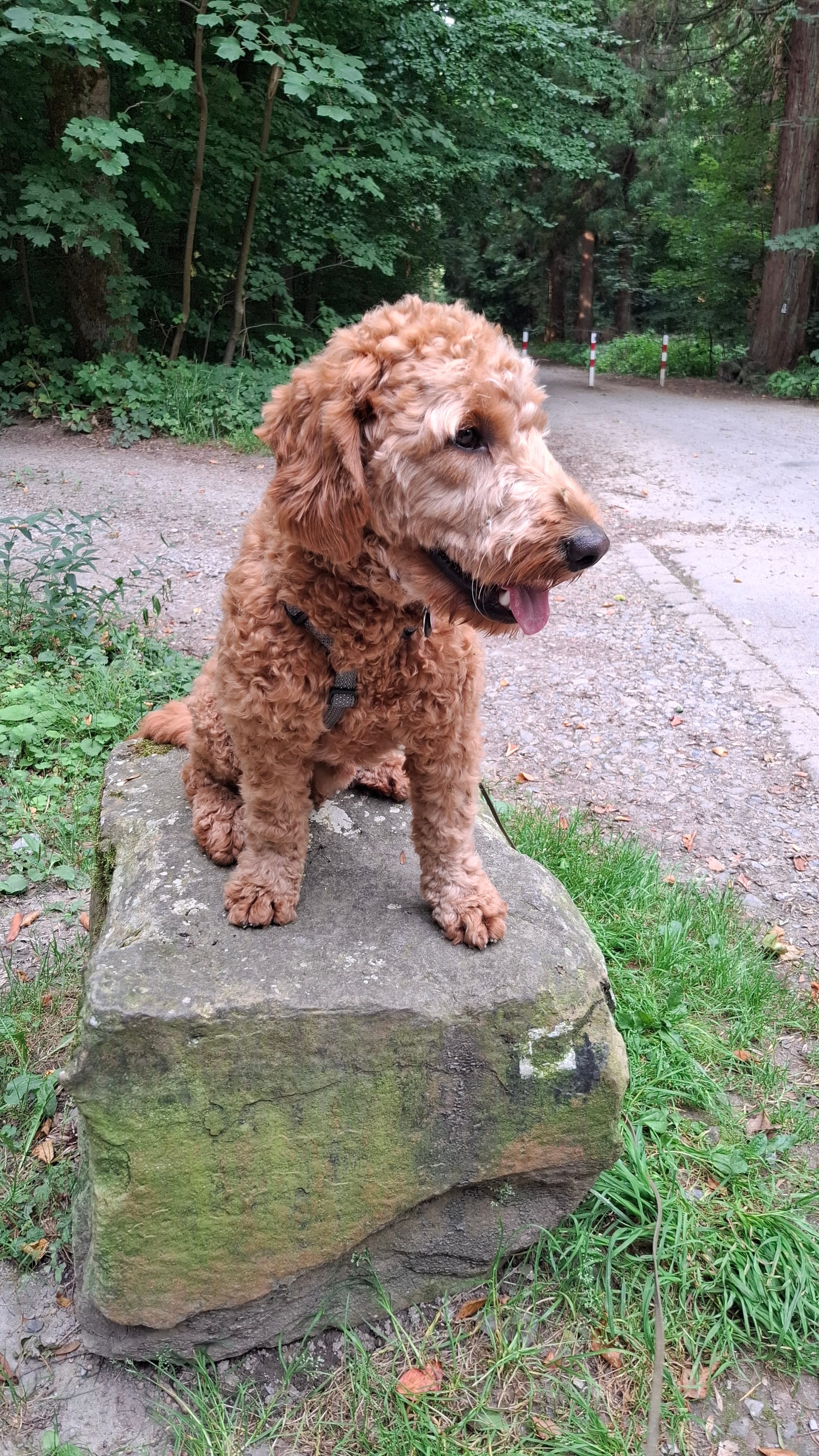 Hallo zusammen, danke fürs Daumen drücken, ich hatte endlich mal wieder zwei normale Wochen. Chilliges homeoffice, ein bisschen Schule und natürlich immer wieder mal auf die Befehle von Frauchen und Herrchen reagieren. Aber da bin ich inzwischen ganz gut. Gut war auch, dass es nicht mehr so heiß war, da macht der Waldspaziergang doch direkt mehr Spaß. Ich freue mich auch immer, wenn wir andere Menschen treffen, besonders welche aus dem erweiterten Rudel, da bekomme ich Streicheleinheiten und immer wieder Leckerlis. Manchmal, wenn meine beiden Lieblingsmenschen länger weg müssen, darf ich bei anderen Rudel-Mitgliedern bleiben. Das ist toll, da werde ich meistens verwöhnt. Frauchen von meinem Herrchen übt im Wald dann auch immer mit mir. Manchmal tue ich ihr dann den Gefallen und höre auf sie. Mit lieben Menschen muss man sich gut stellen. Aber sie muss auch noch üben, meine Blicke richtig zu deuten, da tut sie sich noch schwer. Aber wir schaffen das schon, Übung macht ja bekanntlich den Meister. In diesem Sinne, ich bleibe dran und berichte wieder. Bis bald, euer Elmo.
