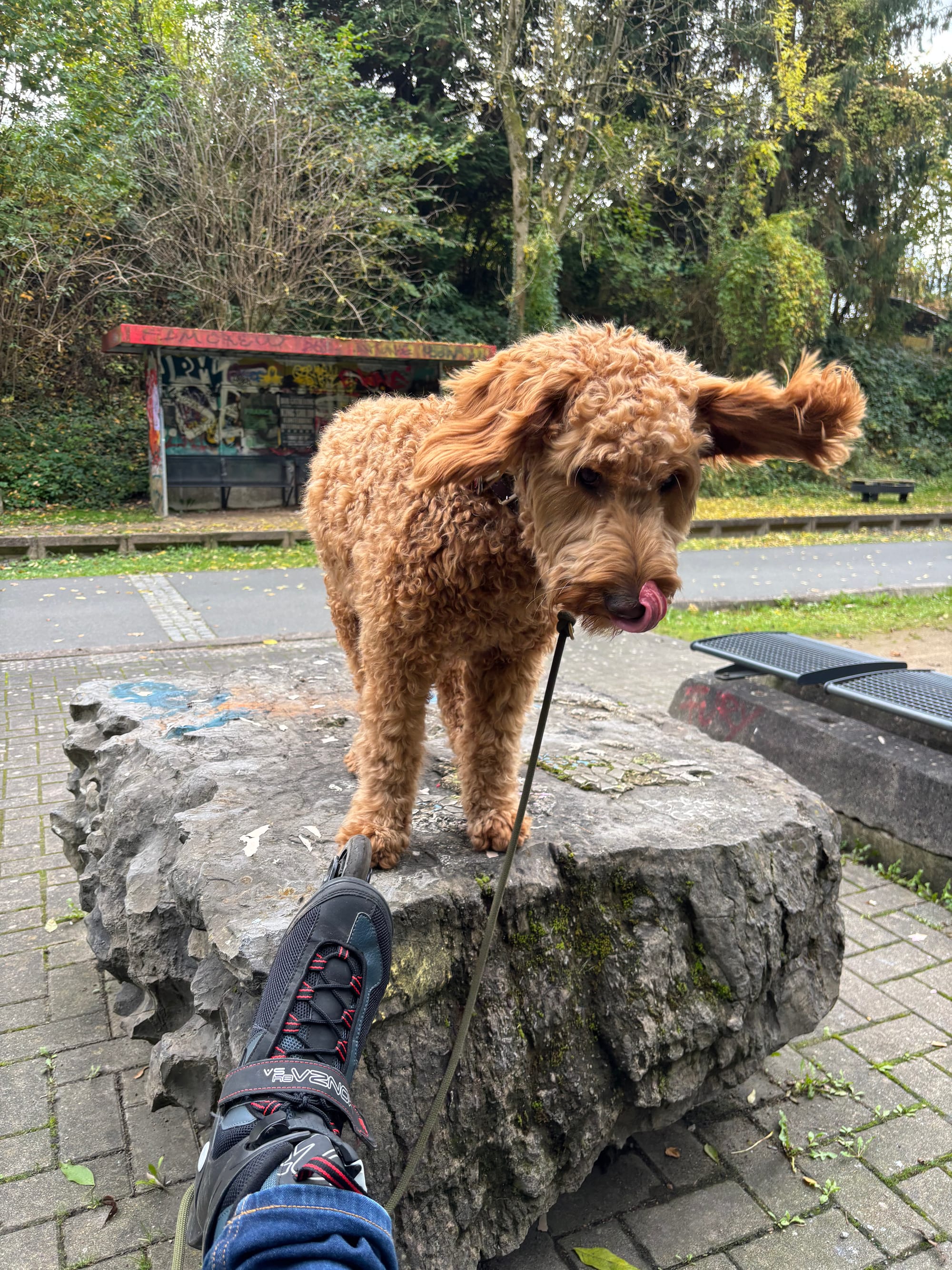 Hallo zusammen, also diese Woche war vielleicht was los, sage ich euch. Nichts lief wie üblich. Also, wo fange ich an? Letztes Wochenende durfte ich bei meiner Tante übernachten. Das war ok, denn ich kann überall schlafen, wo mein Kissen ist. Aber bei ihr durfte ich sogar mal im Bett kuscheln! Voll gut, aber auch sehr warm. Dann haben wir einen neuen Hundekumpel getroffen, ist immer gut und Montag hatte ich endlich ein bisschen Ruhe bei Herrchen von Herrchen. Der packte dann mal wieder und ich musste auf Frauchen aufpassen. Und nach Tagen mit viel Wald, Bewegung und spielen mit anderen Vierbeinern kam Herrchen mal wieder mit einer neuen Sportart um die Ecke. Er auf Inlinern und ich hinterher. Mann, Mann da ist er ja noch schneller als ich und ich kann super rennen, sage ich euch. So, das war's mal wieder, bis zum nächsten Mal. Euer Elmo